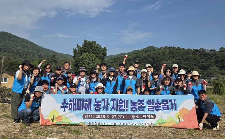 [ 타임즈 - 김시창 기자 ] 인천 미추홀구시설관리공단은 지난 27일 사회공헌활동의 일환으로 옹진군 덕적도를 방문해 수해 농가 복구 지원과 함께 지역 아동 대상 교통안전 캠페인을 실시했다.