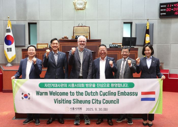 [ 타임즈 - 김시창 기자 ] 시흥시의회 도시환경위원회가 9월 30일 의회청사 소담뜰에서 네덜란드 자전거대사관(Dutch Cycling Embassy, DCE)을 초청해 간담회를 열고, 시흥시 자전거 정책 발전 방향과 친환경 교통 시스템 구축 방안에 대해 논의했다.