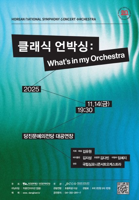 [ 타임즈 - 김시창 기자 ] (재)당진문화재단·당진문예의전당(대표이사 이원철)은 오는 11월 14일 금요일 오후 7시 30분, 당진문예의전당 대공연장에서 국립심포니콘서트오케스트라(이하 KNCO) 초청 공연‘클래식 언박싱 : What’s in my Orchestra’를 선보인다.