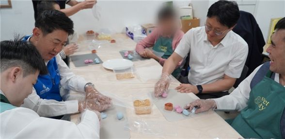 거주 장애인 10명과 같이 미리 준비한 반죽에다 깨, 설탕을 섞은 소를 넣어 원하는 모양으로 만들었다.