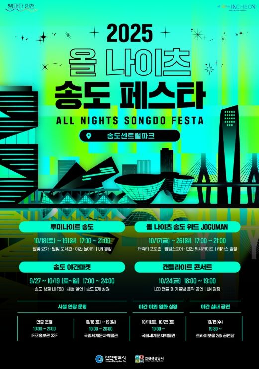[ 타임즈 - 김시창 기자 ] 인천광역시와 인천관광공사는 오는 10월 17일부터 26일까지 송도센트럴파크 일대에서 '2025 올 나이츠 송도 페스타'를 개최한다고 밝혔다.