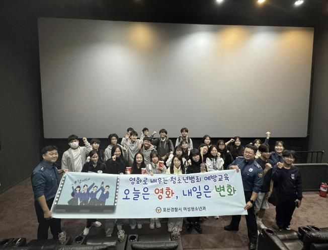 [ 타임즈 - 김시창 기자 ] 포천시 청소년재단 포천청소년문화의집 청소년방과후아카데미는 지난 21일 씨지브이(CGV) 포천에서 포천경찰서 여성청소년과와 함께 청소년 대상 범죄예방교육 및 영화관람 활동을 실시했다.
