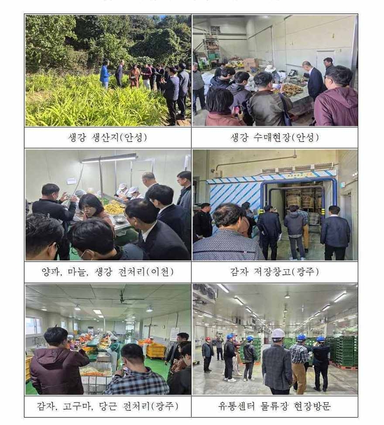 일행은 먼저 안성시 삼죽면 기솔리의 친환경 계약재배 농가를 찾아 생강 수확 현장을 살피고, 농가의 어려움과 현장 애로사항을 청취했다.