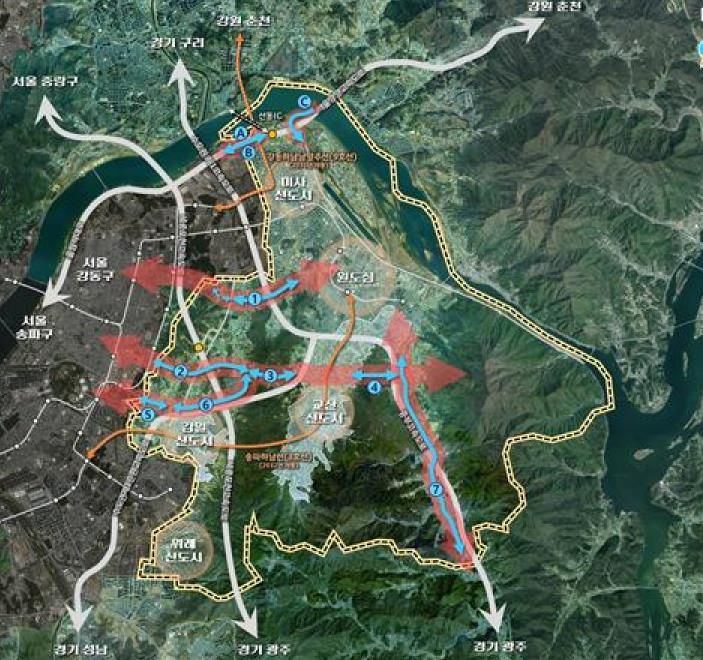 [ 타임즈 - 김시창 기자 ] 하남시가 5개의 광역철도망 계획에 이어 7개의 광역도로망 확충을 본격적으로 추진하며 명실상부한 ‘서울 30분 도시’, 수도권 동부 교통 허브로의 도약을 눈앞에 두고 있다. 교산신도시 광역교통개선대책의 일환으로 한국토지주택공사(LH), 경기주택도시공사(GH)가 총 3,267억 원(광역교통개선대책 기준)을 투입하여 시행하는 7개 광역도로망 사업은 광역교통개선대책 수립 당시 하남시의 적극적인 협의를 통해 반영된 대규모 프로젝트다. 하남시는 과거 신도시 조성 과정에서 겪었던 ‘선(先) 입주, 후(後) 교통’의 불편을 반복하지 않기 위해 계획 수립 단계부터 적극적으로 참여했으며, 현재 신도시 추진단(T/F)을 통해 철도와 도로망 계획을 통합 관리하며 LH, GH 등 관계기관과 함께 속도감 있게 사업을 추진하고 있다.