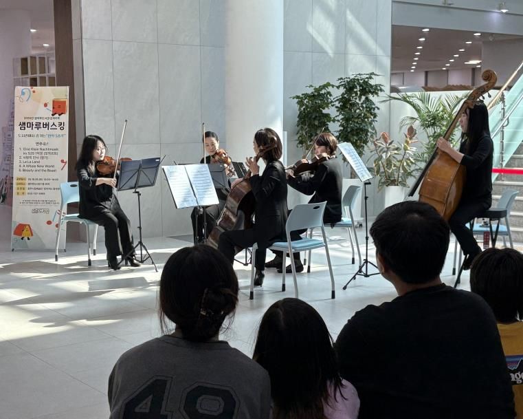 [ 타임즈 - 김시창 기자 ] 지난 25일 샘마루도서관에서 열린 ‘샘마루버스킹–현악 5중주’ 공연이 시민들의 뜨거운 관심 속 마무리됐다.