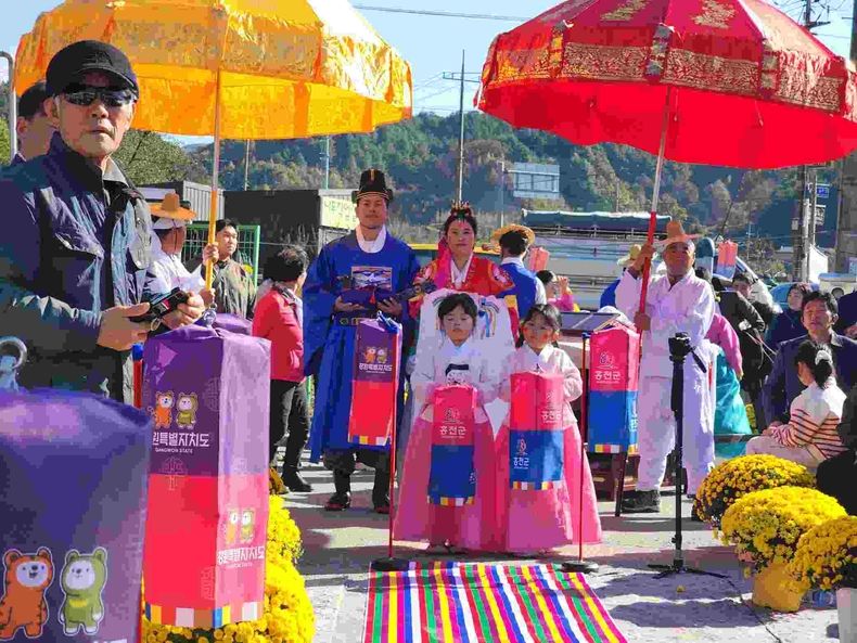 [ 타임즈 - 김시창 기자 ] 홍천군의회 박영록 의장, 김광수·나기호 의원은 11월 1일 화촌면 장평1리 청사초롱 마을에서 개최된 제2회 청사초롱마을 전통혼례문화축제에 참석했다.