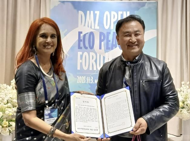 수여식은 지난 11월 3일, 경기도가 주관한 '2025 DMZ OPEN 에코피스포럼' 개회식 직후 진행됐다. 이는 고인의 숭고한 헌신을 기리고, 나야르 작가의 평화 활동에 대한 감사를 표하는 뜻깊은 자리였다.