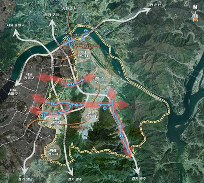 하남시에 따르면 한국토지주택공사(LH)와 경기주택도시공사(GH)는 총 3267억 원을 투입해 오는 2032년까지 7개 광역도로망을 단계적으로 완공할 계획이다. 이번 사업은 하남 시민의 서울 출퇴근 시간을 대폭 단축하고 상습 정체 구간을 해소하는 것을 목표로 한다.