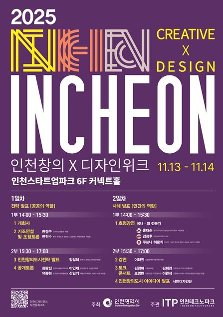 [ 타임즈 - 김시창 기자 ] 인천광역시는 오는 11월 13일부터 14일까지 이틀간 인천스타트업파크 커넥트홀에서 '2025 인천창의X디자인위크'를 개최한다고 밝혔다.