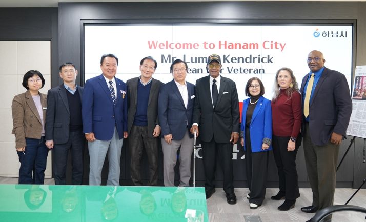 [ 타임즈 - 김시창 기자 ] 하남시는 11월 7일, 美 아칸소주 출신의 6·25 참전용사 루마스 켄드릭(Lumas Kendrick) 씨가 국가보훈부 초청으로 한국을 방문함에 따라 하남시청을 찾았다고 밝혔다. 이번 방문에는 켄드릭 씨의 자녀 루마스 켄드릭 주니어(Lumas Kendrick Jr.), 전 아칸소 한인회장 정 나오미 씨와 하남시 재향군인회 임문택 회장이 함께했다.