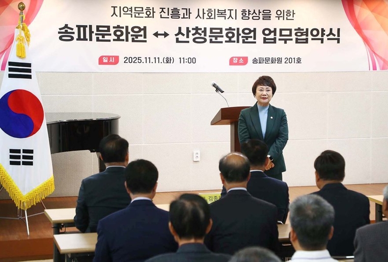 또한 자신의 고향인 산청과 송파가 문화로 연결되는 의미를 강조하며 “오늘의 협약이 양 지역이 함께 성장하고 문화적 가치를 나누는 출발점이 되길 바란다”고 말했다.