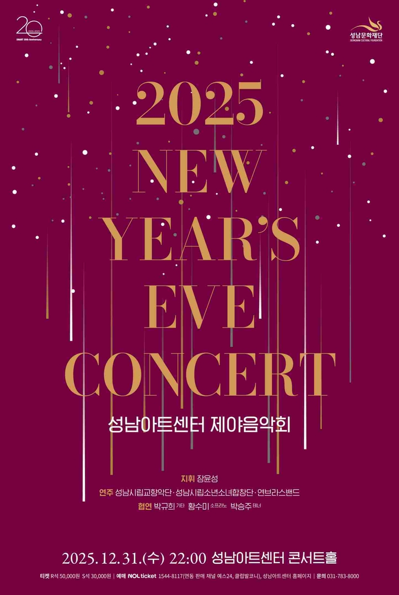 이번 ‘2025 성남아트센터 제야음악회’는 지휘자 장윤성이 이끄는 성남시립교향악단이 새해의 희망과 환희의 메시지를 전하는 클래식 프로그램을 선보이며, 여기에 세계적인 기타리스트 박규희, 국내외 무대에서 사랑받는 소프라노 황수미, 테너 박승주가 협연자로 나서 다채로운 무대를 보여줄 예정이다.