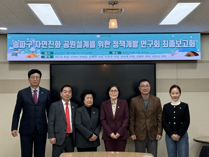 이날 연구회를 마무리 하면서 회장인 곽노상 의원은 “본 연구가 단순한 보고서에 그치지 않고 향후 정책에 적극적으로 반영되어 우리 송파구가 아이들과 주민 모두가 행복한 도시로 한 걸음 더 나아가는 계기가 되길 바란다.”고 밝혔다.