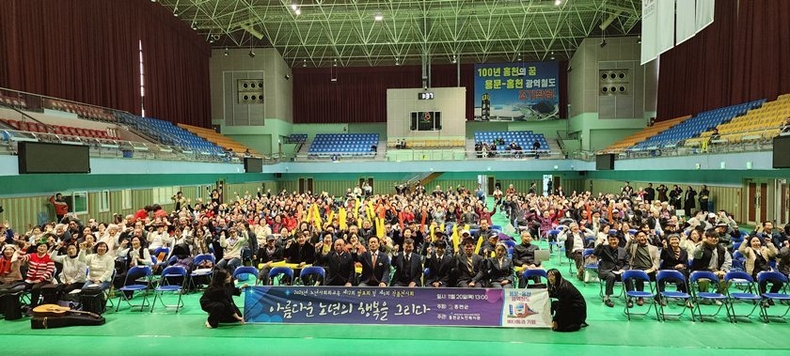 [ 타임즈 - 김시창 기자 ] 홍천군의회 박영록 의장은 11월 20일 홍천종합체육관에서 진행된 2025년 노년사회화교육 제12회 발표회 및 제9회 작품전시회에 참석했다. 이번 행사는 노년사회화교육 프로그램에 참여한 어르신들이 한 해 동안의 배움과 활동 성과를 발표하는 자리로 마련됐다.