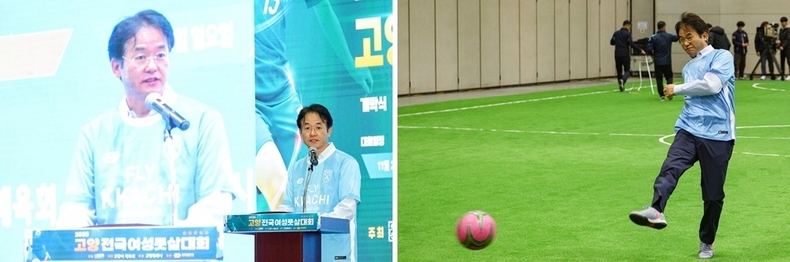 [ 타임즈 - 김시창 기자 ] 22일 고양특례시 킨텍스 특설 경기장에서 ‘2025년 고양 전국 여성 풋살대회’가 화려하게 개막했다. 이번 대회에는 전국 여성 풋살 동호인 16개 팀, 300여 명이 참가해 그동안 갈고닦은 실력을 선보일 예정이다. 조별리그를 거쳐 내일은 8강 토너먼트와 결승전이 펼쳐진다. 이동환 시장은 축사를 통해 “스포츠의 도시 고양에서 여러분들의 기량과 열정을 마음껏 발휘하길 바란다”며 “여성 스포츠 활성화를 위해 다양한 정책과 지원을 아끼지 않겠다”고 말했다.