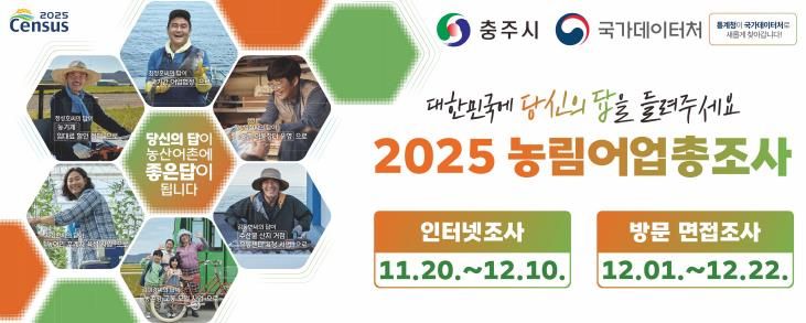 [ 타임즈 - 김시창 기자 ] 충주시는 오는 12월 22일까지 한 달여간 ‘2025년 농림어업총조사’를 실시한다고 밝혔다.