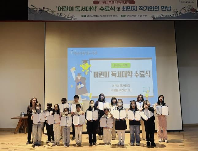 [ 타임즈 - 김시창 기자 ] 아산시 중앙도서관은 22일 ‘2025년 제9회 어린이 독서대학 수료식’을 개최했다고 밝혔다.