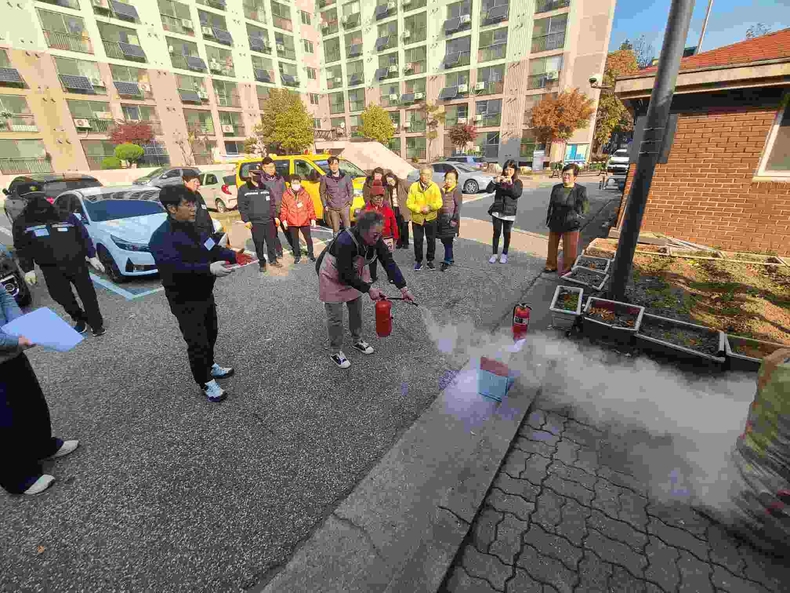 ○ 청학전세임대아파트 관리사무소, 경로당과 합동으로 진행한 이번 모의 훈련은 특히 ‘어르신 화재대피 및 소화훈련’을 통해 고령층이 실제 상황에서 즉각 활용할 수 있는 실질적 교육 중심으로 운영해 큰 호응을 얻었다.