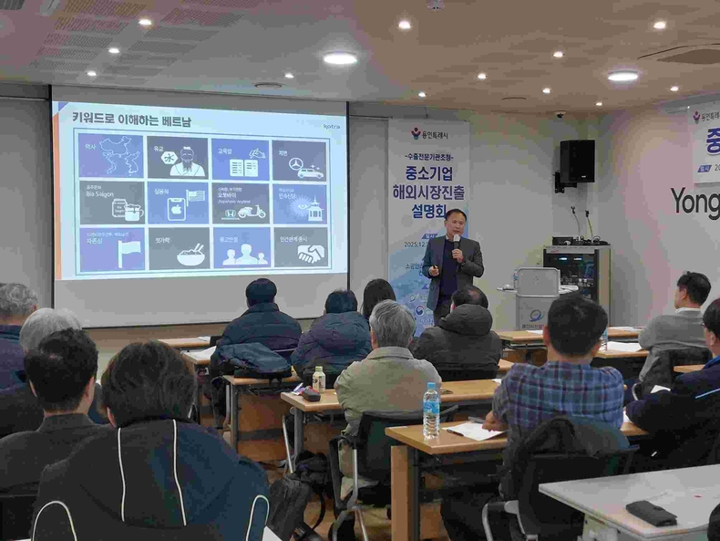 [ 타임즈 - 김시창 기자 ] 용인시산업진흥원(이사장 이상일)은 12월 3일 소공인·스타트업 허브에서 용인을 비롯한 경기도 소재 중소기업의 해외시장 진출 지원을 위한 설명회를 개최했다고 밝혔다. 이번 설명회는 수원세관과 KOTRA와 공동으로 마련됐으며, 동남아시아 주요 교역국인 베트남과 인도네시아의 최신 시장 동향과 진출 전략을 실무 중심으로 제공한 것이 특징이다.