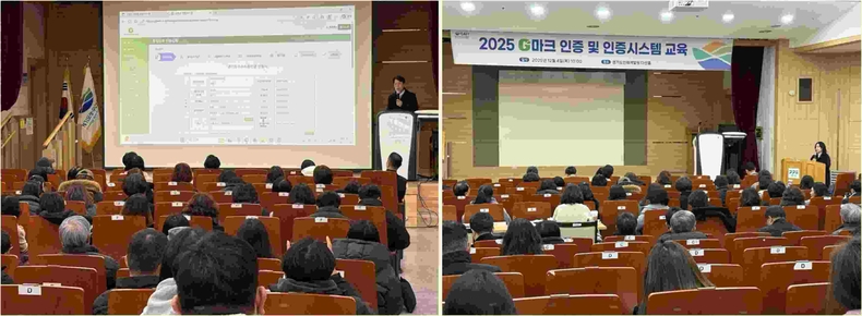 이번 교육에서는 먼저 G마크 인증기준과 심사 절차, 인증 취득을 위한 서류, 부적합 및 위반사례를 설명하여 참석자들의 이해도를 높였다. 특히 생산, 가공, 유통 단계별 평가 항목 검사 기준 등 현장에서 바로 적용 가능한 실무 내용이 중심적으로 다뤄졌다.
