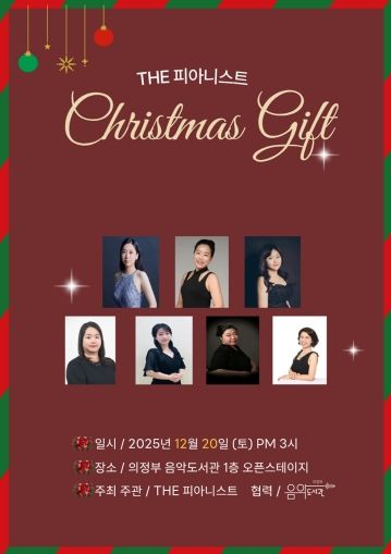 [ 타임즈 - 김시창 기자 ] 의정부음악도서관은 12월 20일 오후 3시, 1층 오픈스테이지에서 ‘The 피아니스트 크리스마스 선물’ 공연을 개최한다.