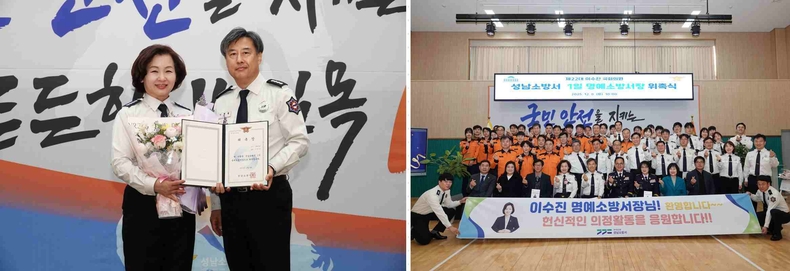 위촉장은 이제철 성남소방서장이 직접 전달했으며 이수진 명예소방서장은 성남소방서의 주요 업무와 지역 내 재난 대응 체계 등에 대한 설명을 듣고 소방공무원들의 노고를 격려했다.