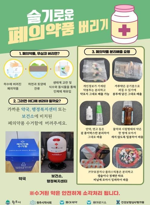 [ 타임즈 - 김시창 기자 ] 원주시는 가정에서 배출되는 유통기한 지난 폐의약품을 안전하게 처리하기 위하여 올바른 분리배출 방법 홍보에 나섰다.