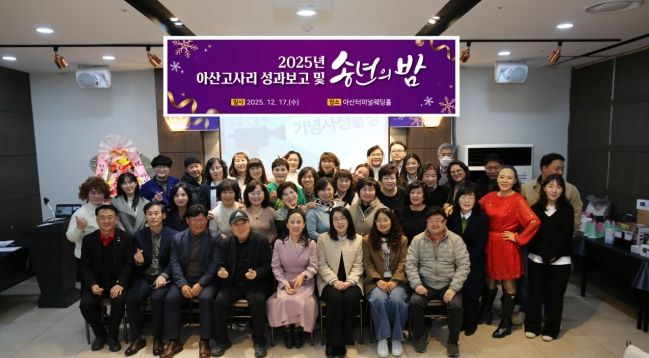 2019년 창립 이후 꾸준히 봉사활동을 이어오고 있는 아산고사리는 이번 송년회를 통해 올 한 해 동안 진행한 다양한 나눔 활동과 환경 보호 실천 성과를 공유했다. 이날 행사에는 회원들이 한자리에 모여 봉사의 의미를 되새기고 서로를 격려하는 뜻깊은 시간을 가졌다.