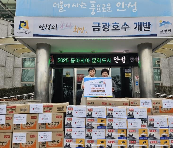 [ 타임즈 - 김시창 기자 ] 안성시는 12월 23일, 금광면 주민자치위원회 양영순 위원장이 겨울철 취약계층 가구의 따뜻한 겨울나기를 돕기 위해 라면, 김 등 생필품 100만원 상당을 금광면 행정복지센터에 기탁했다고 밝혔다.