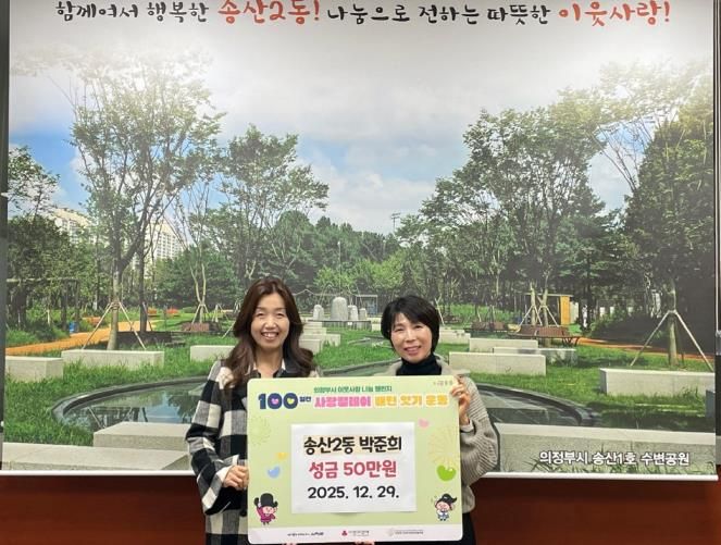 [ 타임즈 - 김시창 기자 ] 의정부시 송산2동주민센터는 12월 29일 송산2동 지역사회보장협의체 박준희 부위원장이 어려운 이웃을 돕기 위해 성금 50만 원을 기탁했다고 밝혔다.