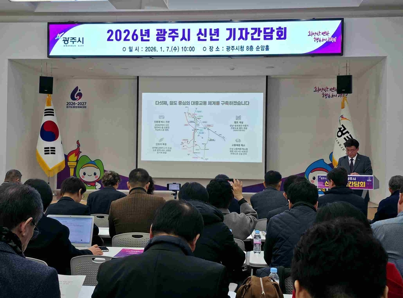 방 시장은 7일 오전 시청 8층 순암홀에서 2026년 신년 기자회견을 열었다. 방 시장은 "시민의 삶을 가장 가까이에서 지키는 시정을 통해 지속 가능한 광주의 미래를 열겠다”며 “올해는 광주가 수도권 최고 자족도시로 도약하는 전환점이 될 것”이라고 전했다.