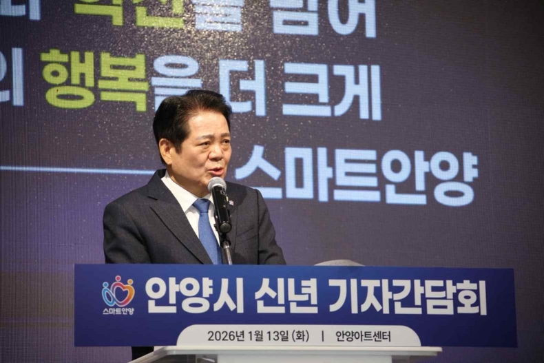 최대호 안양시장은 13일 열린 2026년 신년 기자간담회에서 “마부정제(馬不停蹄)의 각오로 인공지능(AI) 도시 대전환을 추진힐 것”이라고 밝히며 변화의 속도와 실행력을 동시에 끌어올리겠다는 의지를 보였다.