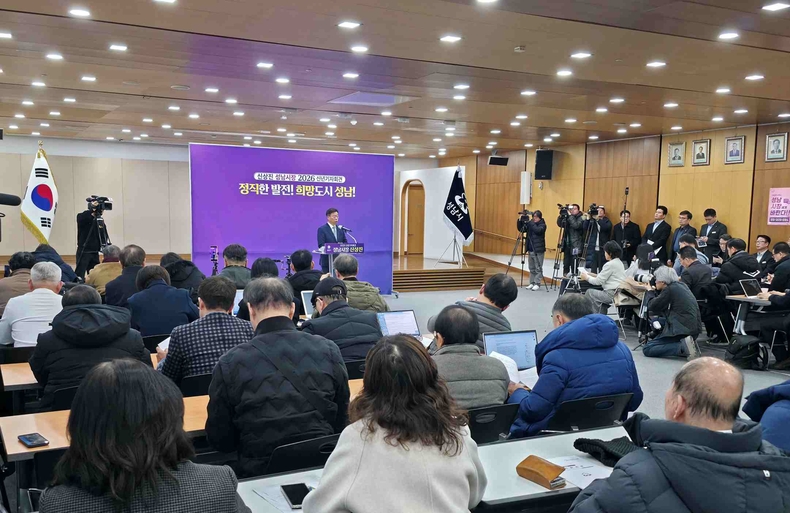 신상진 성남시장은 14일 시청 한누리관에서 열린 신년 기자회견에서 "지난 3년 반은 무너진 공정을 바로 세우고 시정의 방향을 현실로 만들기 위해 치열하게 달려온 시간이었다"며 "이제는 시민이 체감하는 변화를 행정의 디테일로 이어갈 것"이라고 전했다.