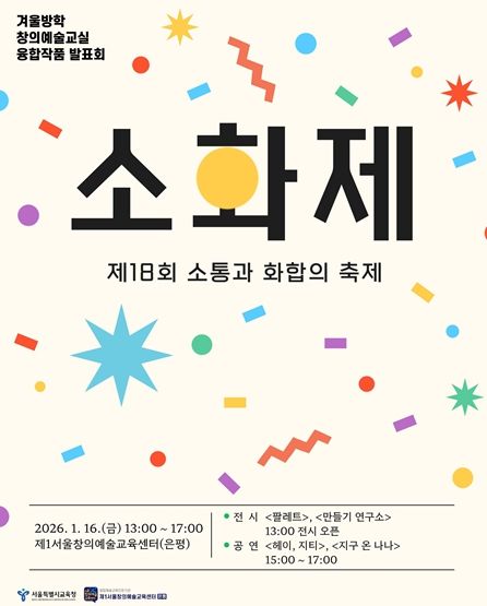 〈소·화·제〉는 제1서울창의예술교육센터가 매년 여름·겨울방학 중 운영하는 ‘방학 창의예술교실’의 교육 성과를 공유하는 융합 발표회로, 참여 학생들은 장르 간 협업과 융합을 통해 예술적 표현의 확장과 소통·협력의 가치를 경험하게 된다.