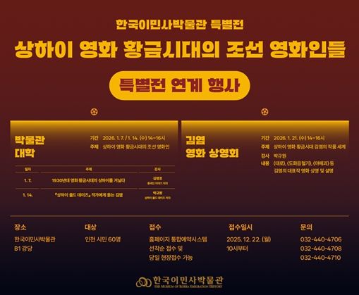 [ 타임즈 - 김시창 기자 ] 인천광역시 시립박물관 분관 한국이민사박물관은 특별전 〈상하이 영화 황금시대의 조선 영화인들〉과 연계해 중국 영화 황제로 불렸던 배우 김염(金焰)의 대표 영화 작품 상영회를 개최한다.