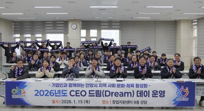 [ 타임즈 - 김시창 기자 ] 안양산업진흥원은 15일 오후 3시30분 안양창업지원센터 강당에서 관내 기업인 150여 명을 대상으로 지역사회 문화·체육 활성화를 위한 ‘2026 CEO 드림(Dream) 데이’를 열었다.