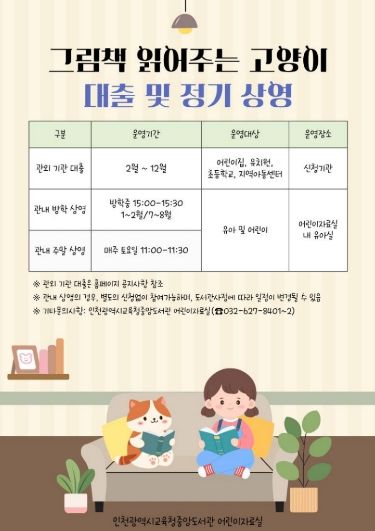 [ 타임즈 - 김시창 기자 ] 인천광역시교육청중앙도서관은 그림책 스트리밍 서비스'그림책 읽어주는 고양이'를 2월부터 관내 희망 기관에 대출한다
