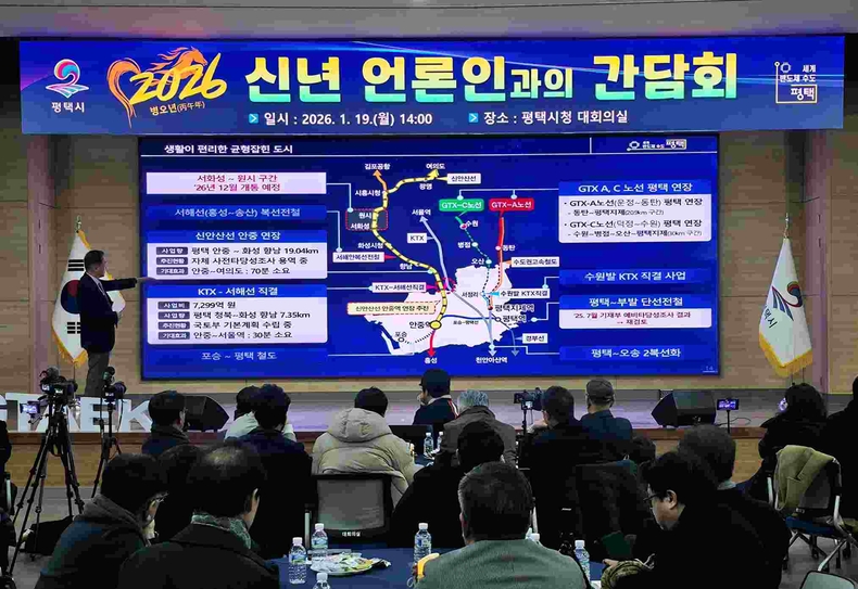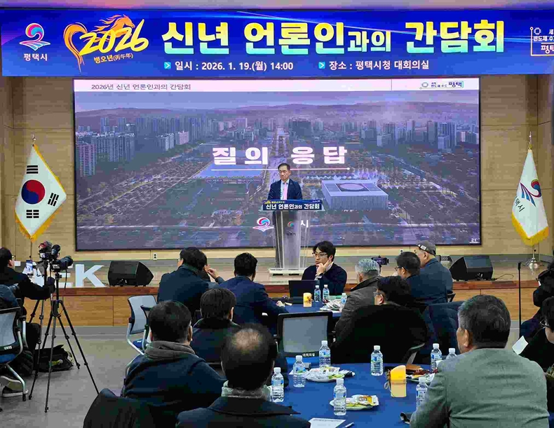평택시는 19일 신년 기자간담회를 열고 2026년 시정 운영 방향과 주요 정책 과제를 발표했다. 이날 간담회에는 정장선 시장을 비롯한 간부 공무원들이 참석해 민선 7·8기 동안의 주요 성과를 점검했다. 더불어 민선 8기 마지막 해를 향한 중점 추진 전략을 공유했다.