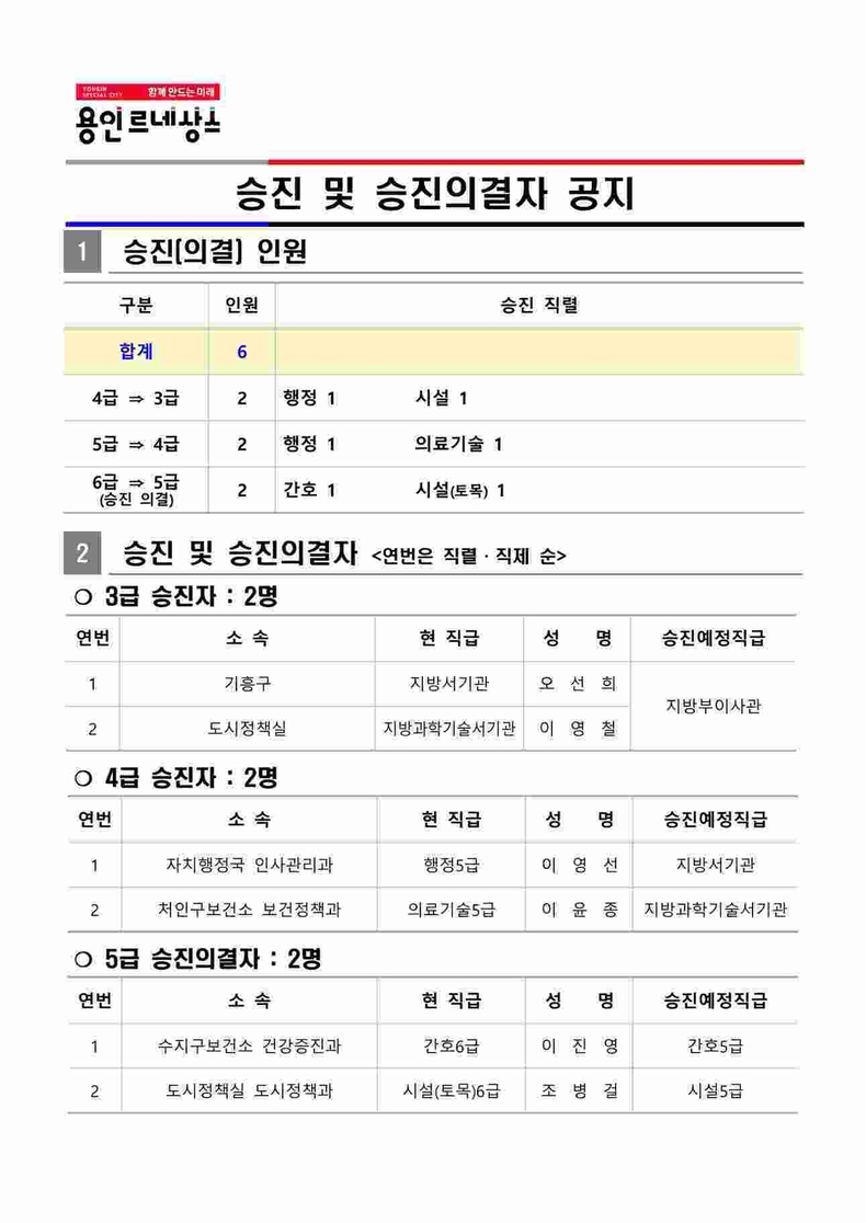 용인특례시 승진인사 의결 알림(2026년 1월)