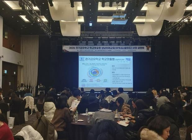 [ 타임즈 - 김시창 기자 ] 경기도성남교육지원청은 5일 밀리토피아호텔에서 관내 초·중·고·특수학교 교원 및 지자체 관계자 등 300여 명이 참석한 가운데 ‘2026 경기공유학교 학교맞춤형 성남미래교육(숲에듀) 사업설명회’를 개최했다.