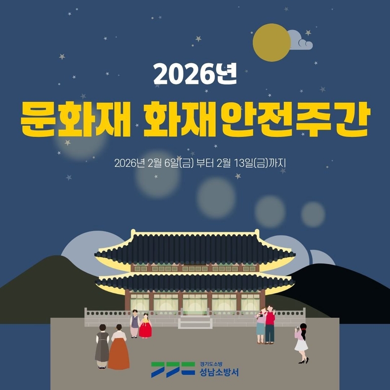 [ 타임즈 - 김시창 기자 ] 성남소방서(서장 이제철)는 2월 6일부터 13일까지 ‘문화재 화재안전주간’을 운영하며, 관내 문화재 및 전통사찰 등 화재 취약 대상에 대한 집중 안전관리에 나선다고 밝혔다.