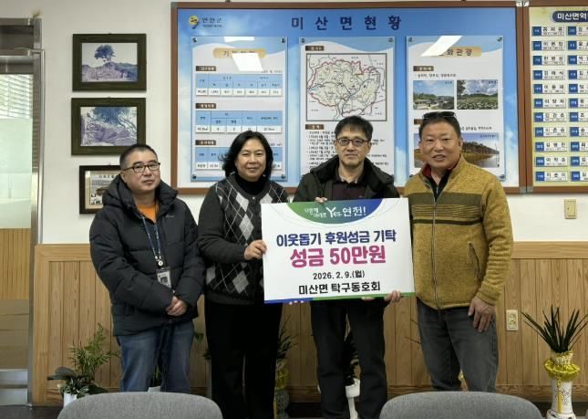 이번 성금은 회원들이 자발적으로 뜻을 모아 마련한 것으로, 명절을 앞두고 경제적 어려움으로 힘든 시간을 보내고 있는 미산면 저소득 계층과 취약계층 가구에 필요한 물품으로 전달될 예정이다.