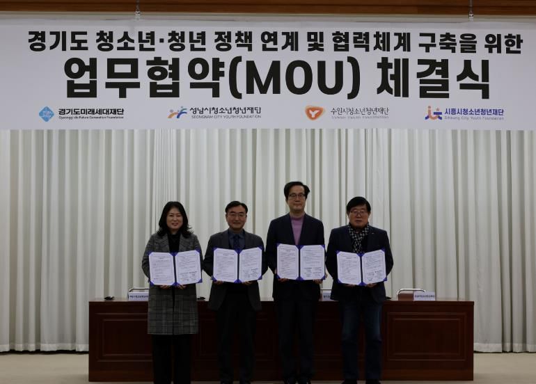 [ 타임즈 - 김시창 기자 ] 경기도미래세대재단은 12일 옛 경기도청사 신관 4층 대회의실에서 수원·성남·시흥시청소년청년재단과 ‘경기도 청년 정책 연계 및 협력체계 구축 업무협약’을 체결했다.