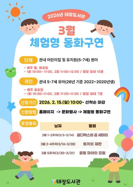 3월에는 ▲귤디락스와 곰 세마리 ▲토끼의 재판 ▲꿀벌 마야의 모험 등과 같이 아이들에게 친숙하고 흥미로운 동화를 준비했다.