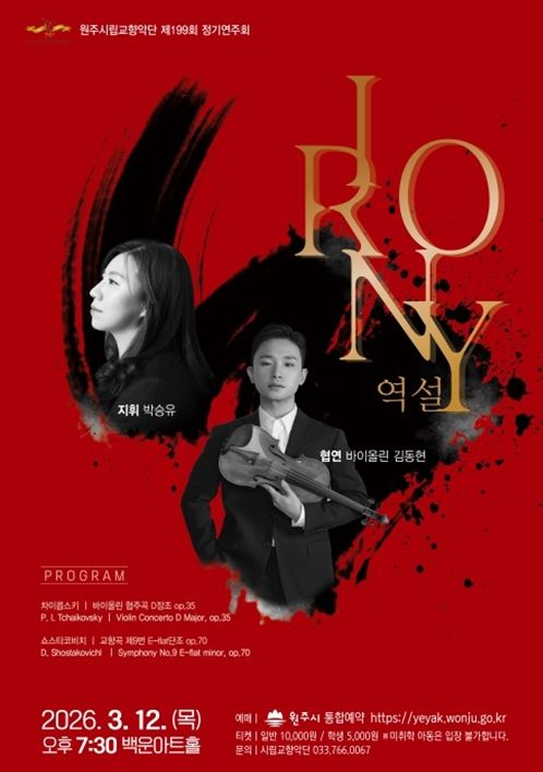 [ 타임즈 - 김시창 기자 ] 원주시립교향악단은 다음 달 12일 오후 7시 30분 백운아트홀에서 제199회 정기연주회 ‘IRONY 역설’을 개최한다.