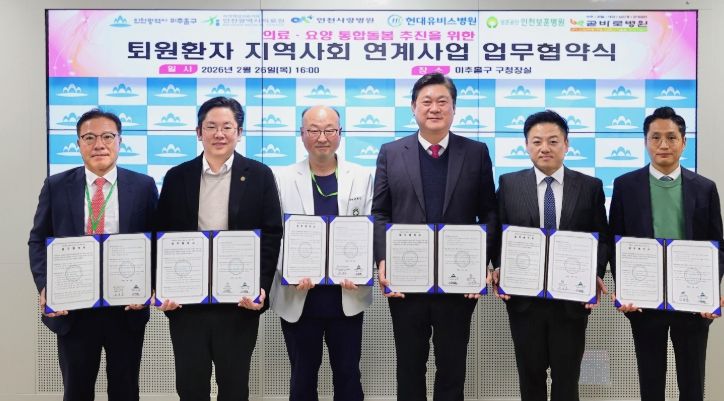 [ 타임즈 - 김시창 기자 ] 인천 미추홀구는 지난 26일 지역 내 5개 의료기관과 ‘퇴원 환자 지역사회 연계사업’ 추진을 위한 업무협약을 체결했다.