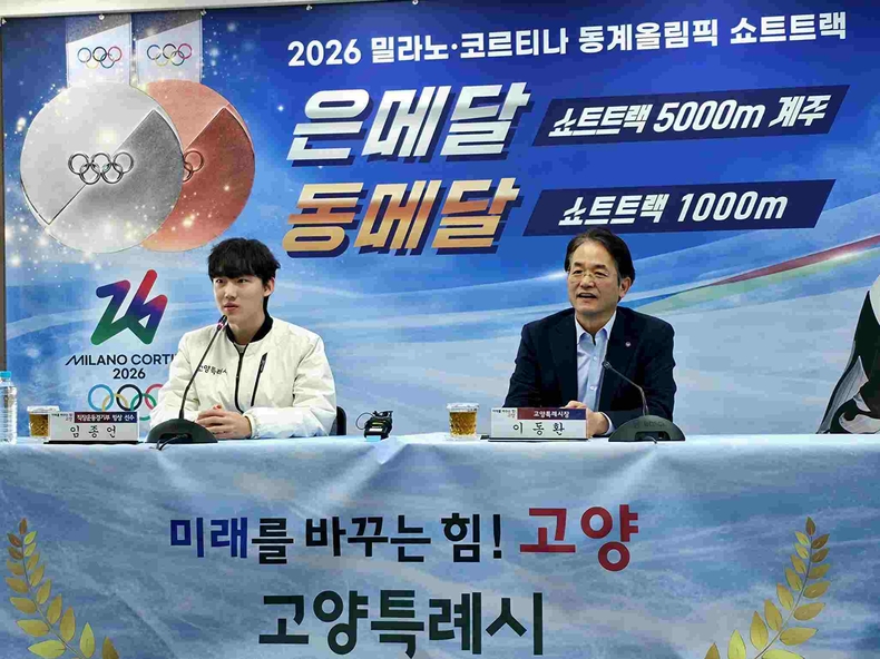 [ 타임즈 - 김시창 기자 ] 2026 밀라노·코르티나담페초 동계올림픽을 마치고 귀국한 고양시(시장 이동환) 소속 국가대표 선수단을 향한 환영 행사가 27일 고양특례시 시청에서 열렸다. 이날 행사에는 고양시청 빙상팀 소속 쇼트트랙 국가대표 임종언 선수가 참석해 시민과 취재진 앞에서 올림픽 소회를 밝혔다.