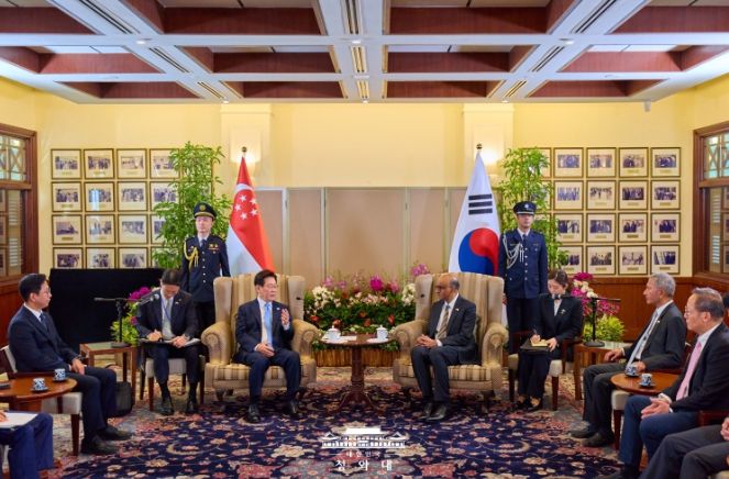 [ 타임즈 - 김시창 기자 ] 싱가포르를 국빈 방문 중인 이재명 대통령은 3월 2일 오전 한-싱가포르 정상회담에 앞서 '타르만 샨무가라트남(Tharman Shanmugaratnam)' 대통령과 면담을 갖고, 양국 관계 발전 방안에 대해 논의했다.