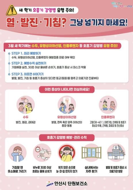 정영란 단원보건소장은 “개인위생 수칙 실천만으로도 호흡기 감염병의 상당 부분을 예방할 수 있다”며 “학생과 학부모, 교직원이 함께 예방 수칙을 실천해 건강하고 안전한 학교 환경을 만들어 주길 바란다”고 당부했다.