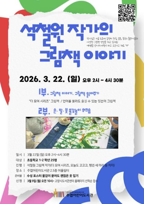 [ 타임즈 - 김시창 기자 ] 고양특례시 주엽어린이도서관은 어린이들이 그림책 작가를 직접 만나 창작 이야기를 듣고 물감놀이에 참여할 수 있는 프로그램 ‘석철원 작가의 그림책 이야기’를 오는 3월 22일 운영한다.